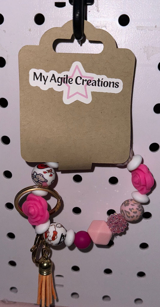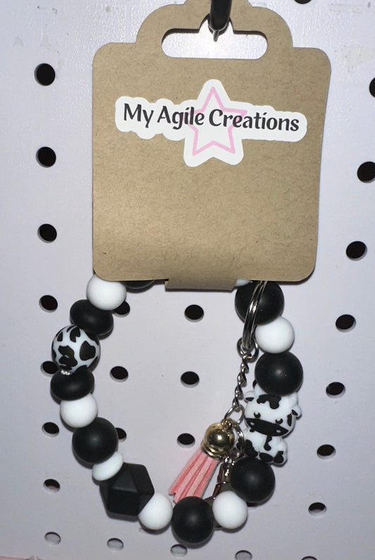 Sold outCow w/ pink Tassel Wristlet Keychain
